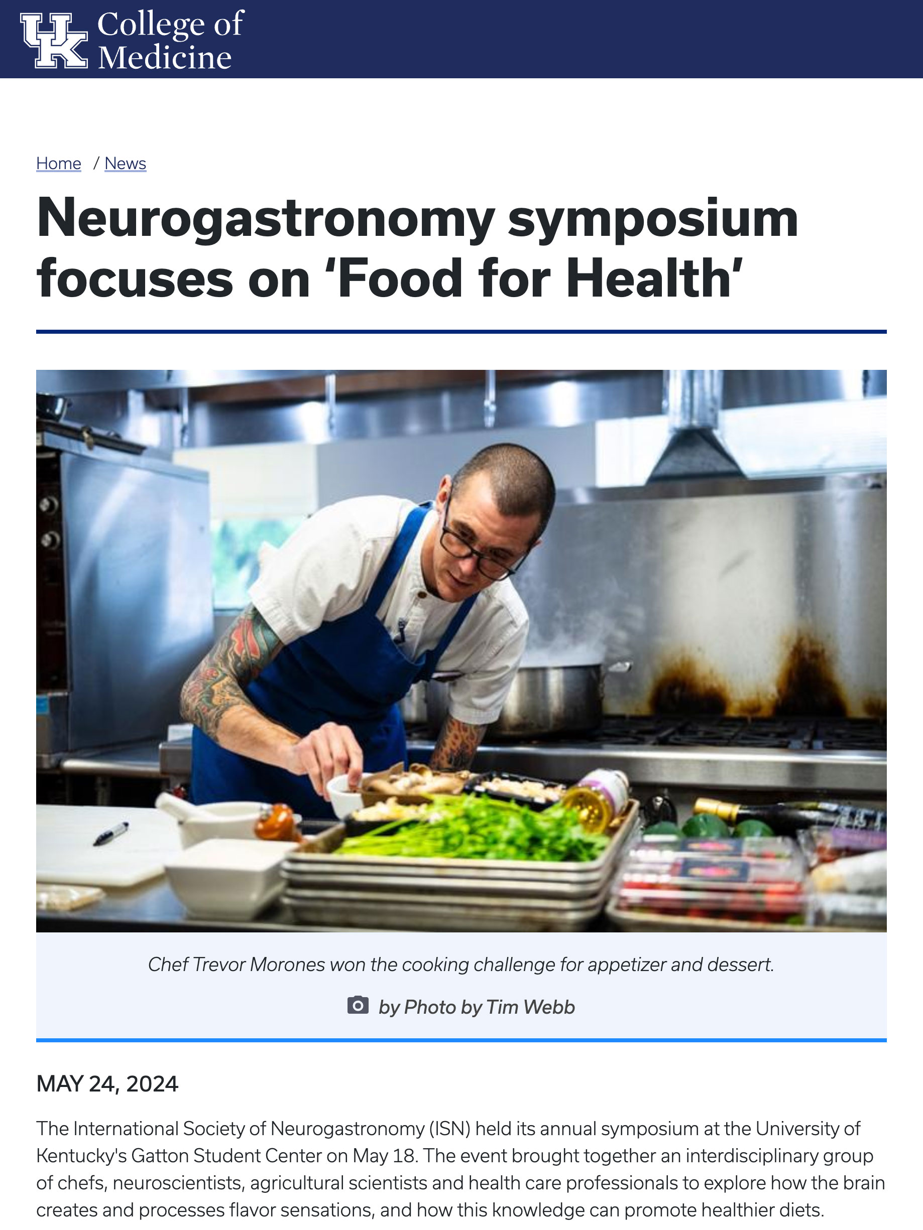 Chef Trevor Morones won the cooking challenge for appetizer and dessert at The International Society of Neurogastronomy annual symposium